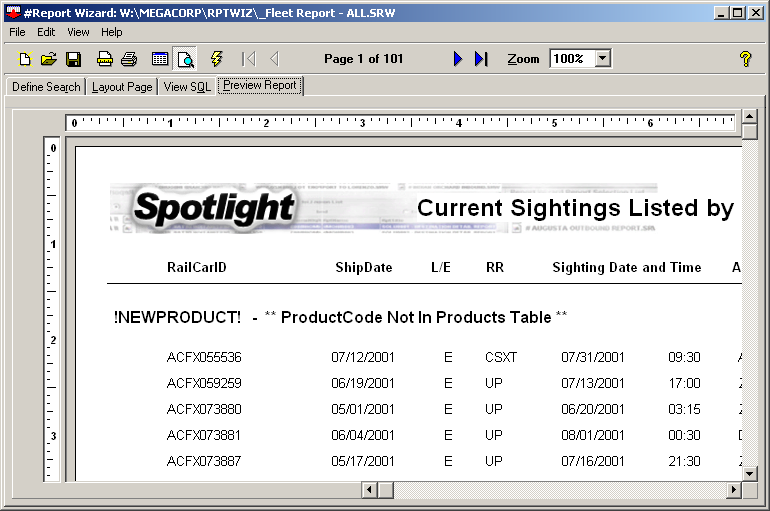 Report Wizard Results
